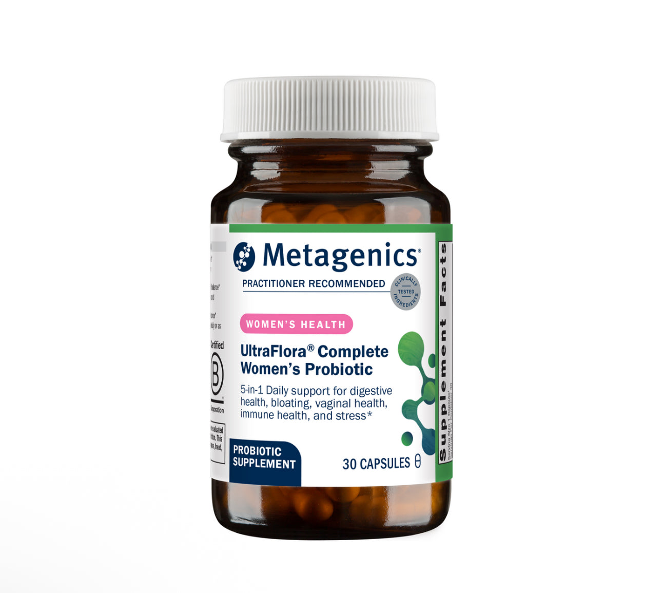 Feel more confident and balanced from the inside out with UltraFlora® Complete Women’s Probiotic. This 5-in-1 formula is Metagenics’ best women's probiotic, designed for gastrointestinal health with strains to optimize women's vaginal and urinary health—plus additional benefits for your whole body.*
